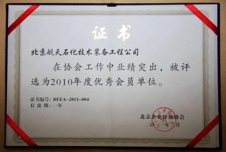 我公司經(jīng)過北京質(zhì)量協(xié)會評價中心組織的綜合測評后,以用戶滿意度指數(shù)90.66、用戶忠誠度指數(shù)93.18的優(yōu)秀成績榮獲“2010年度北京企業(yè)評價協(xié)會優(yōu)秀會員”榮譽稱號(證書編號:BEEA-2011-004)。